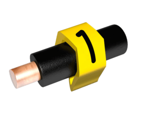 Маркер однознаковый закрытого профиля PY-01 цифра «1». На провода сечением 0,2-0,7 мм², диаметром 1,0-2,0 мм. PY-01003AV40.1